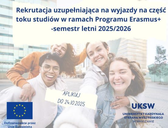 Dnia 15 października br. (środa) w systemie USOSweb rozpocznie się rekrutacja uzupełniająca na wyjazdy studentów na studia w semestrze letnim roku akademickiego 2025/2026 w ramach programu Erasmus+.
