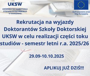 Rekrutacja Erasmus+ dla Doktorantów Szkoły Doktorskiej – semestr letni 2025/2026
