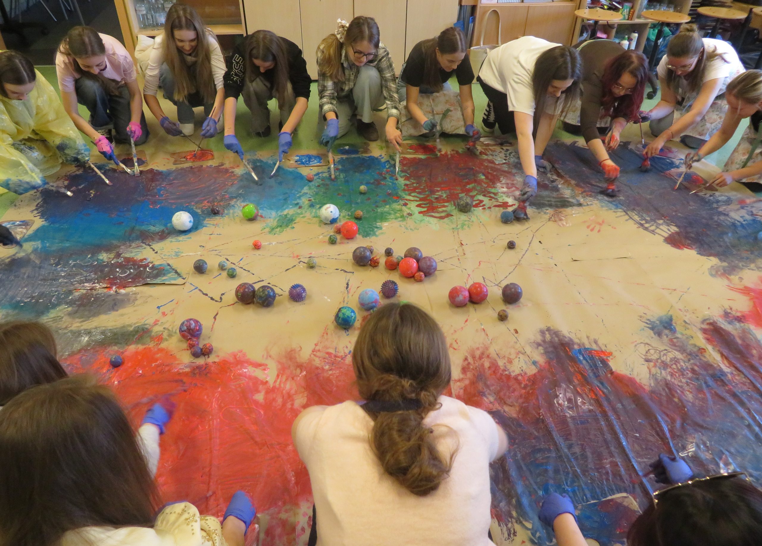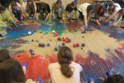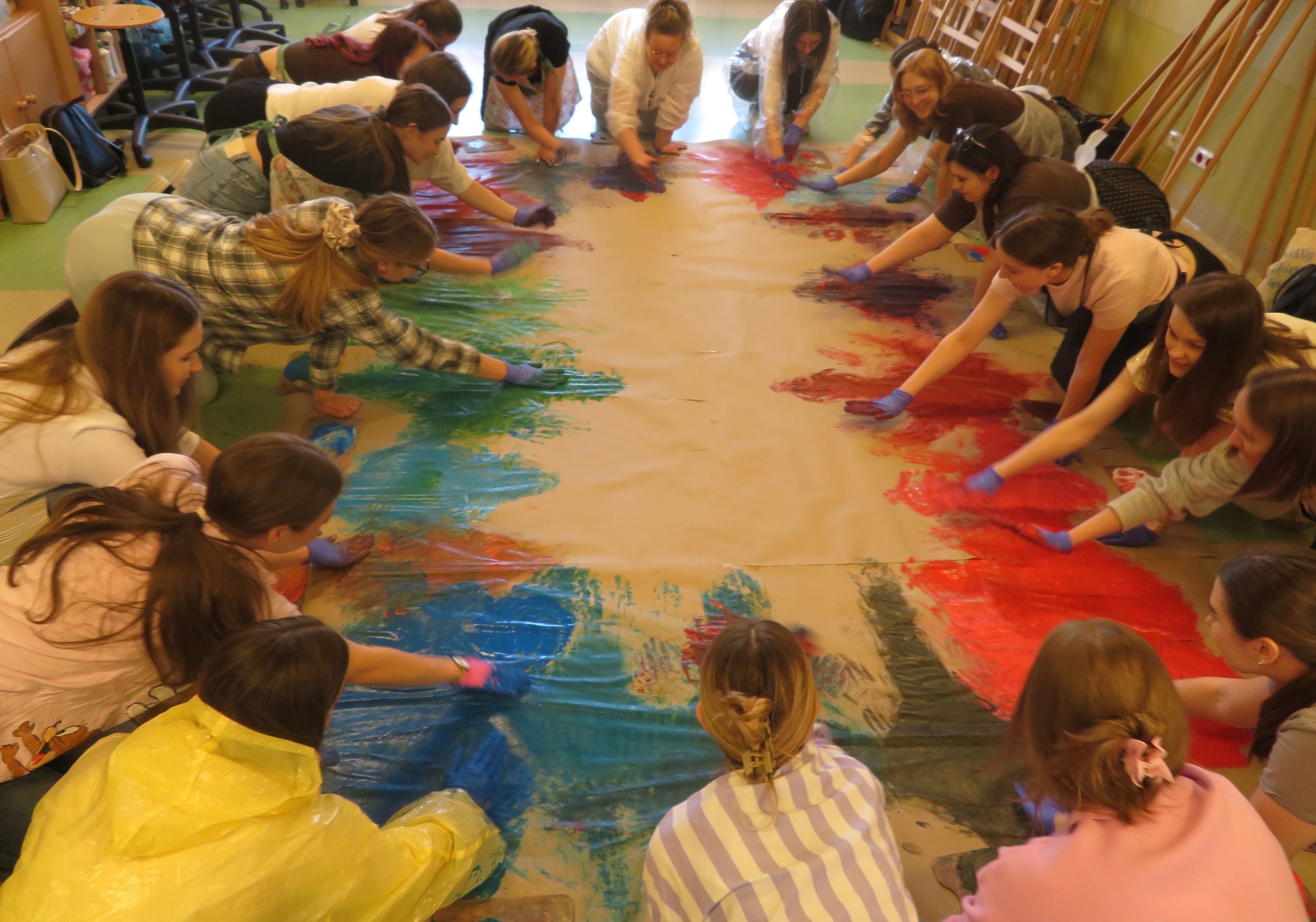 W ramach przedmiotu Plastyczna ekspresja twórcza prowadzonego przez dr Kingę Krawiecką Studenci IV roku Pedagogiki Przedszkolnej i Wczesnoszkolnej aktywnie uczestniczyli w procesie dynamicznego malowania z użyciem twórczych technik plastycznych oraz różnych narzędzi plastycznych i nieplastycznych. Zajęcia z cyklu Ruch wyróżnia stanowią formę innowacyjnego podejścia dydaktycznego.