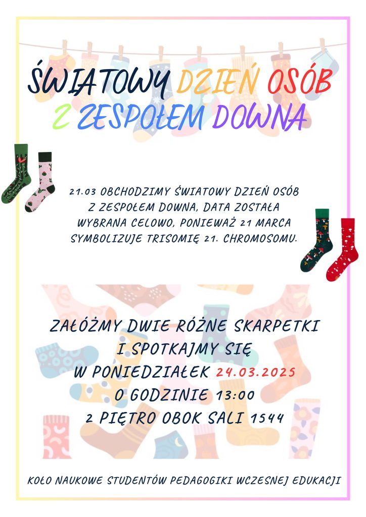 Symbolem Zespołu Downa są kolorowe skarpetki będące synonimem niedopasowania społecznego i genotypowego z jakim borykają się osoby z zespołem Downa.